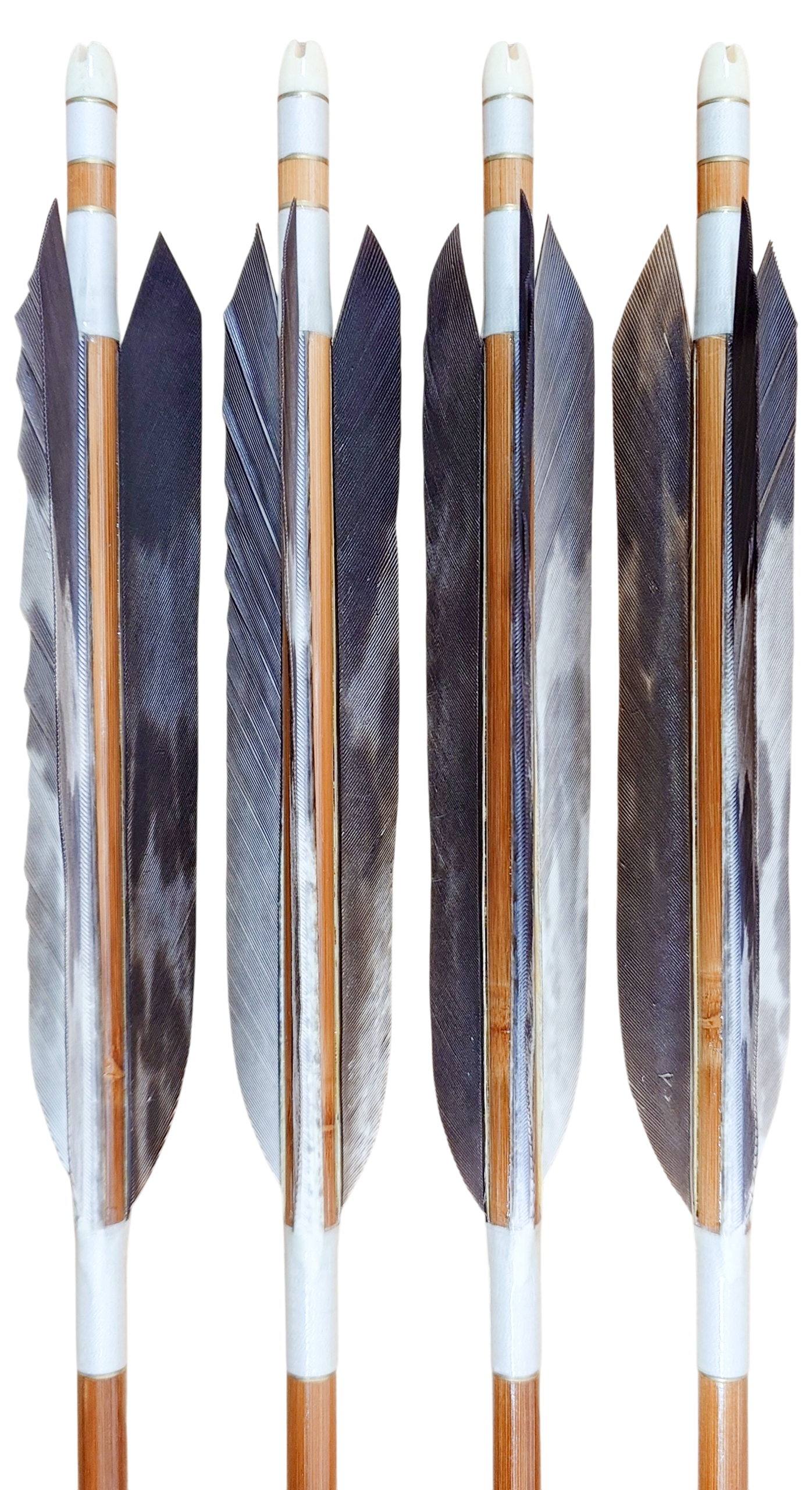 熊鷲製特上尾羽(貝方)を使った竹上箆四矢です