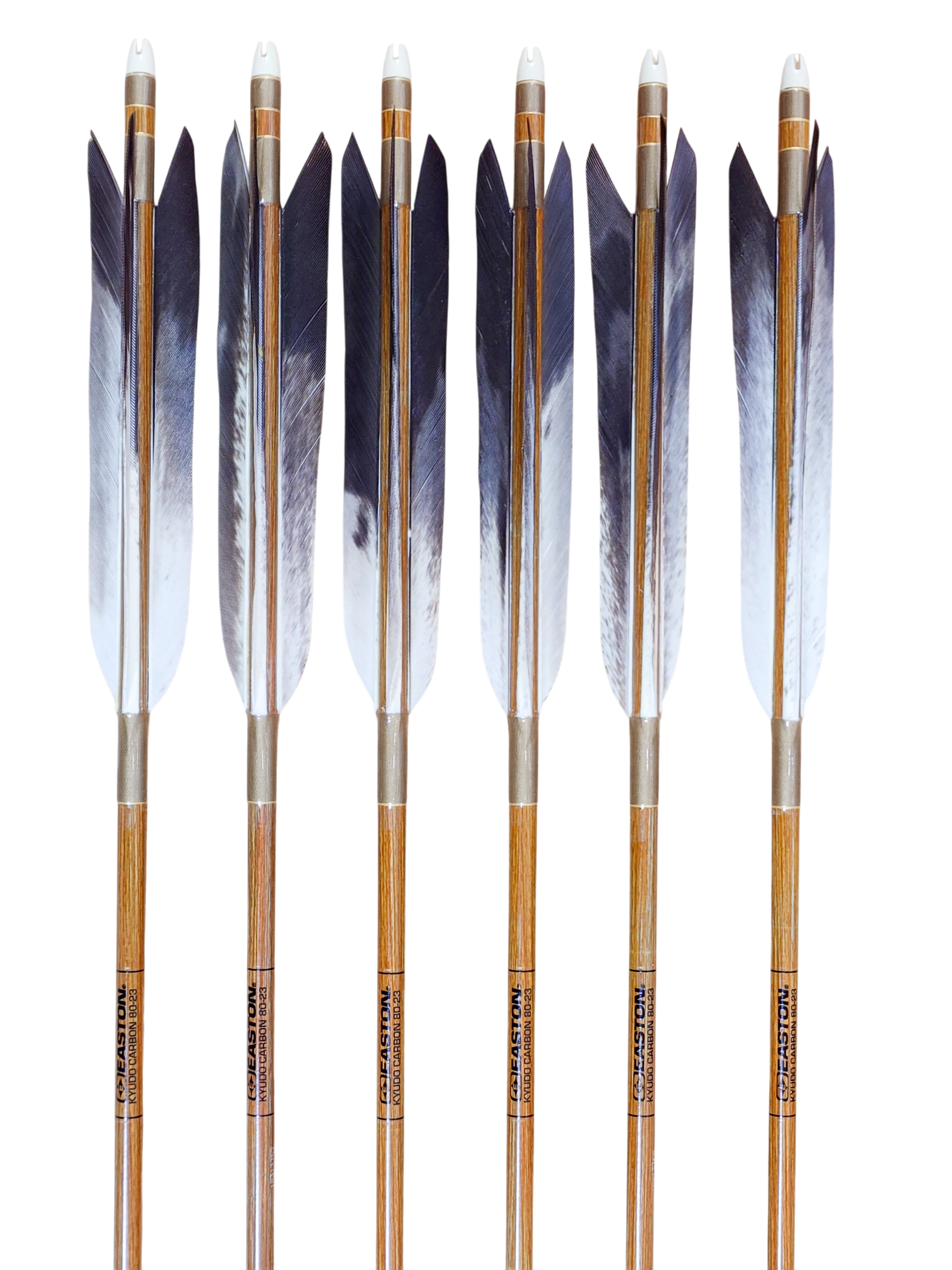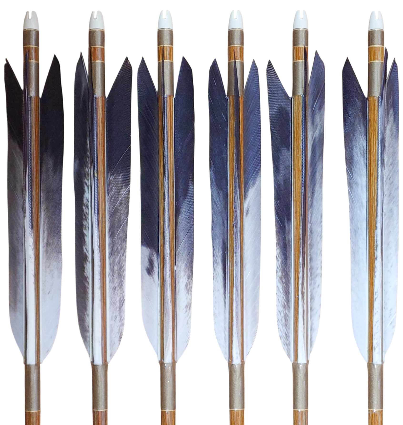 犬鷲製尾羽(傷有)を使った近的用六矢です。
